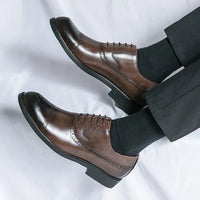 Klassische Brogue-Details und eine patinierte Oberfläche verleihen diesem echten Leder-Anzugschuh mit gepolsterter Innensohle ein elegantes, schlankes Profil, ideal für legere oder formelle Anlässe.