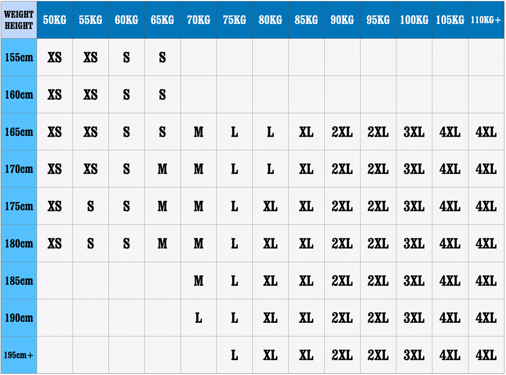 - Größenoptionen : S, M, L, XL, 2XL, 3XL, 4XL