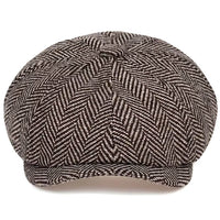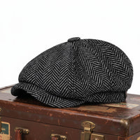 Eine strukturierte Newsboy-Cap mit einem mutigen Fischgrätenmuster, das traditionelle Textur mit zuverlässigem Komfort kombiniert. Entworfen für kühles Wetter, hält sie deinen Stil sowohl schick als auch praktisch.