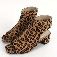Lerne die Sierra Heels kennen – eine furchtlose Mischung aus Komfort und Selbstbewusstsein. Mit dem mutigen Leopardenmuster, dem Reißverschluss vorne und dem klobigen Absatz sind diese Peep-Toes gemacht, um deinen Gang zu einem Statement zu machen, von lässigen Tagen bis zu gewagten Nächten.